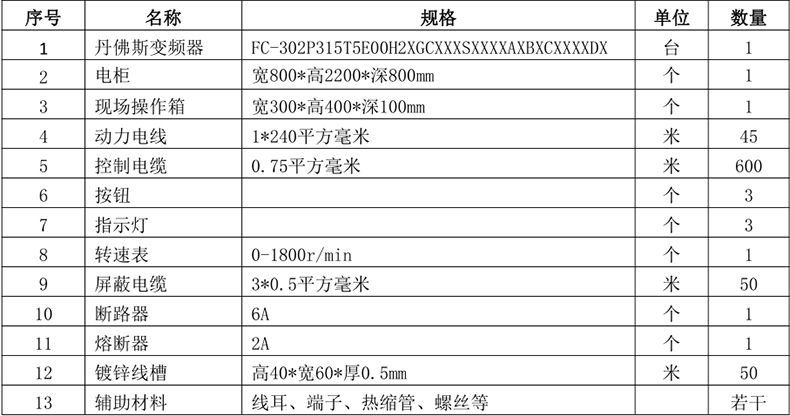 (1) 、電機(jī)改用丹佛斯 FC302 系列變頻器控制(電機(jī)采用三角形接法),實現(xiàn)軟啟停功能,啟動電流在電機(jī)額定電流以內(nèi),節(jié)約電能;