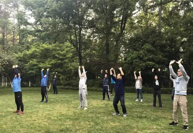 為更好地準(zhǔn)備運動會,使大家能夠在工作之余加強(qiáng)鍛煉,保持身體健康,特邀上海敬衡堂的老師現(xiàn)場領(lǐng)操,組織華佗五禽戲教學(xué)。