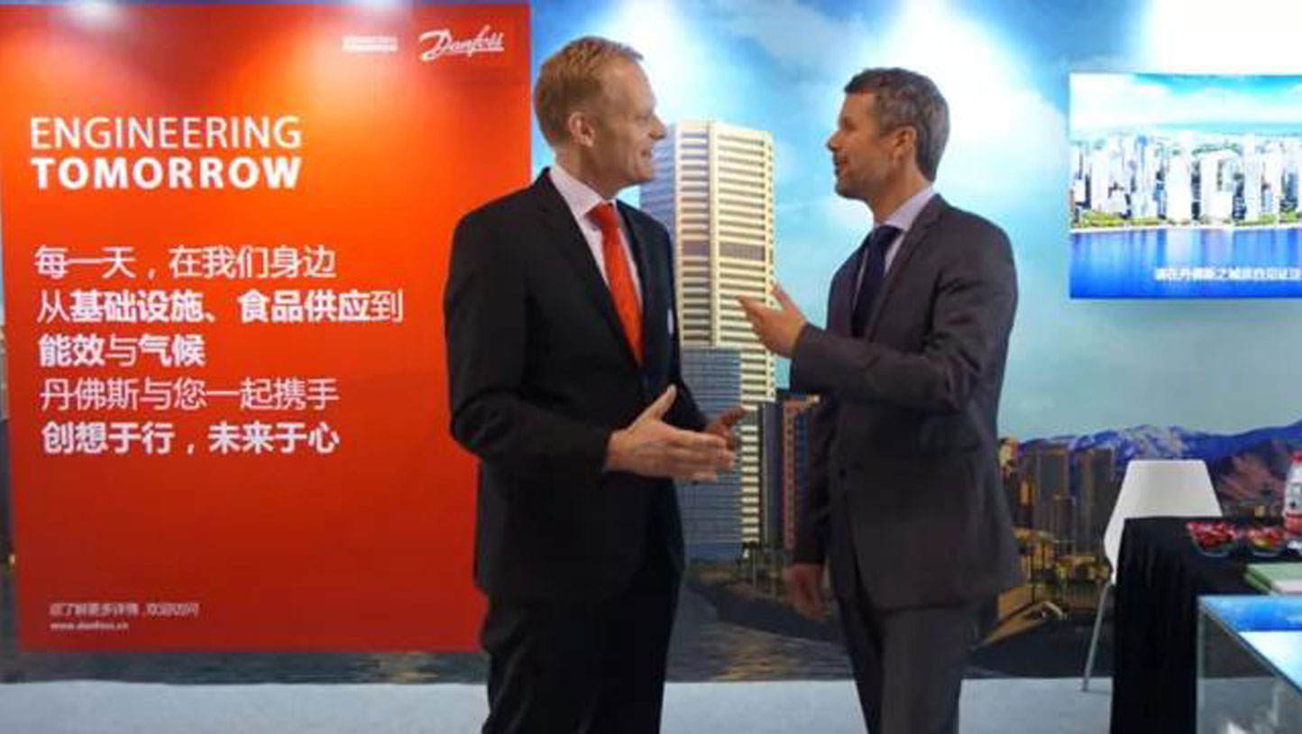丹麥王儲腓特烈殿下也被丹佛斯展臺吸引,到訪參觀期間,丹佛斯中國區(qū)總裁司徒嘉德先生熱情接待了皇儲殿下,介紹了丹佛斯近些年來在全球各地尤其是在中國所取得的長足發(fā)展,并著重強調了丹佛斯產品和解決方案在北京等國際大都市城市基礎設施升級改造過程中的巨大潛力。
