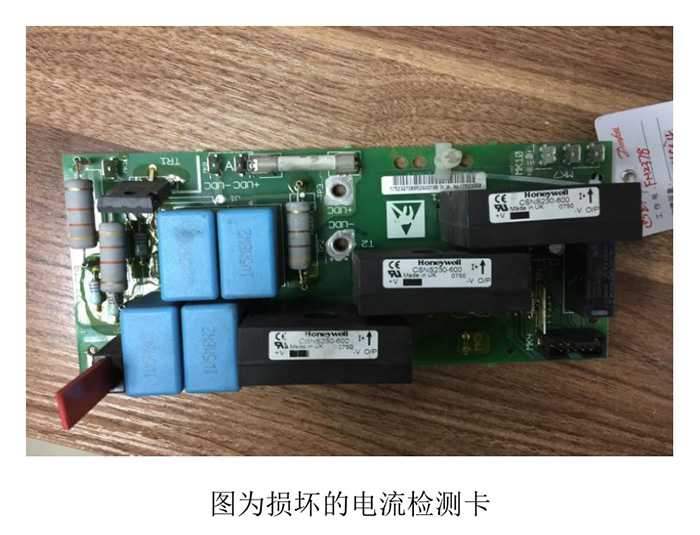 案例一:客戶反映有一臺(tái) VLT6000 75KW 的變頻器出現(xiàn)報(bào)警并跳閘,報(bào)警不能復(fù)位,變頻器不能運(yùn)行。我們到現(xiàn)場(chǎng)首先檢查主電路是否正常,確認(rèn)正常無(wú)誤后再上電,然后查看變頻器報(bào)警記錄,發(fā)現(xiàn)有AL14報(bào)警,屬于接地故障報(bào)警。出現(xiàn)接地故障報(bào)警一般有兩個(gè)可能,要不就是電機(jī)或者變頻器真的出現(xiàn)接地系統(tǒng)故障,要不就是變頻器電流檢測(cè)電路故障導(dǎo)致的。于是我們首先排查外部原因,查看變頻器和電機(jī)的接地線是否連接正常,用搖表給電機(jī)和變頻器打絕緣查看是否達(dá)到絕緣要求,查看電機(jī)電纜線是否過(guò)長(zhǎng)等等。經(jīng)仔細(xì)檢查,沒(méi)發(fā)現(xiàn)外部電路出現(xiàn)異常,那就基本可以確定是本身變頻器的電流檢測(cè)電路出現(xiàn)故障了。我們把變頻器的電流檢測(cè)卡更換后,AL14報(bào)警復(fù)位消除,變頻器恢復(fù)正常運(yùn)行。