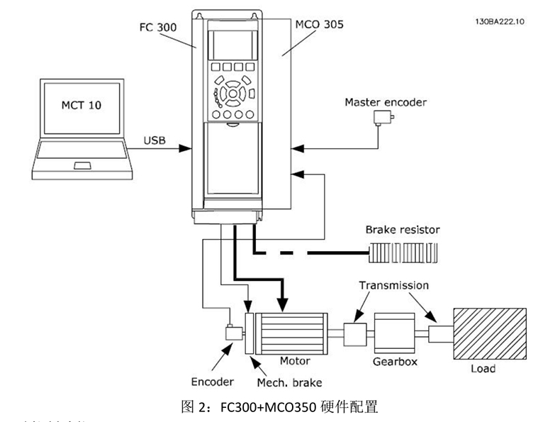 注:當(dāng)在閉環(huán)磁通矢量模式下使用 FC300 時,編碼器必須安裝在電動機主軸上,而在非閉環(huán)磁通矢量模式下使用 FC300 時,反饋編碼器可安裝在任一傳動機構(gòu);
