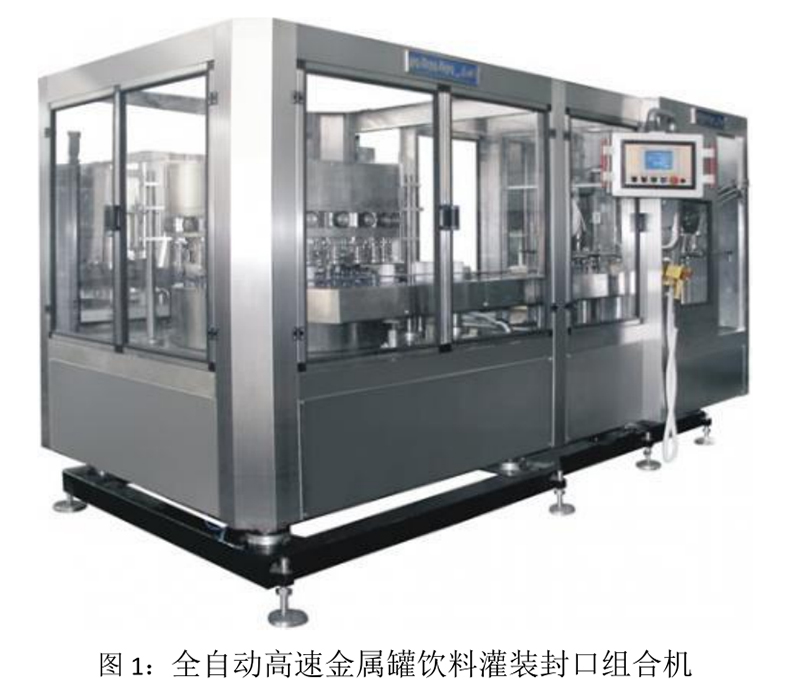 該設(shè)備是目前國內(nèi)生產(chǎn)能力高、智能化控制程度先進的灌裝封口組合設(shè)備(如圖 1);廣泛應(yīng)用于金屬罐包裝的果蔬汁、涼茶等飲料產(chǎn)品的自動化高速包裝,集灌裝、封罐于一體。主要有如下幾方面特征: