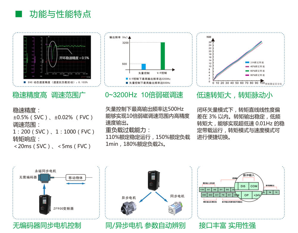 技術(shù)特點: 自動轉(zhuǎn)矩提升及滑差補償功/加減速性能優(yōu)越/支持多種PG卡/穩(wěn)速